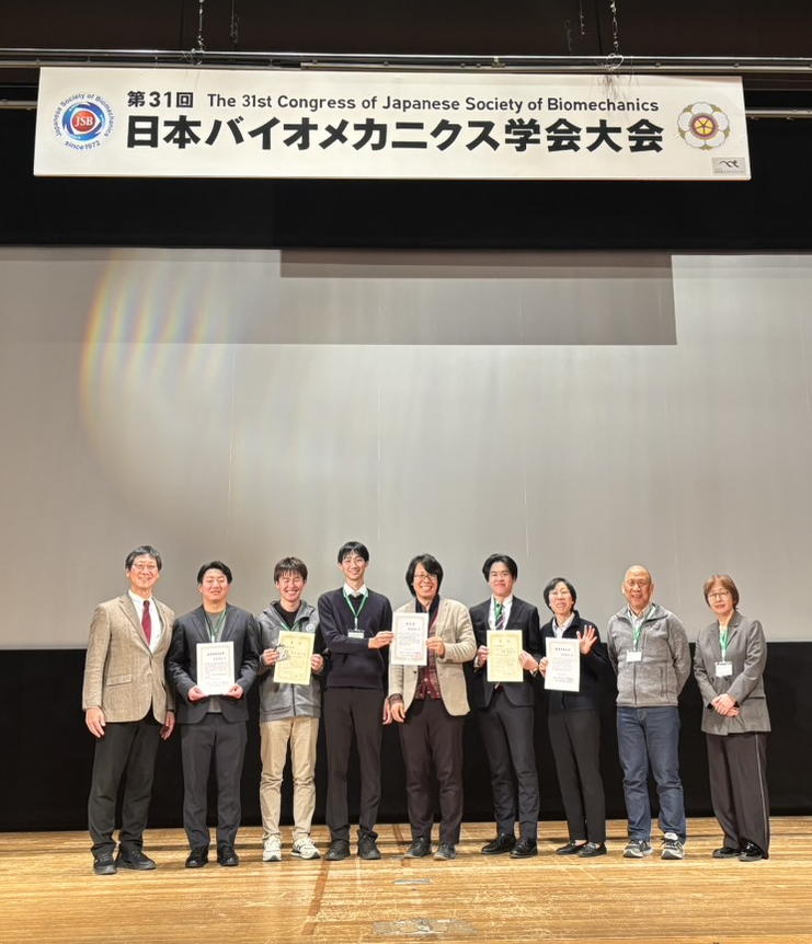 - 日本バイオメカニクス学会第31回大会において,佐渡夏紀助教を筆頭著者とする論文がJSB学会賞,広野泰子特任助教を筆頭著者とする論文がJJBSE最優秀論文賞を受賞しました.